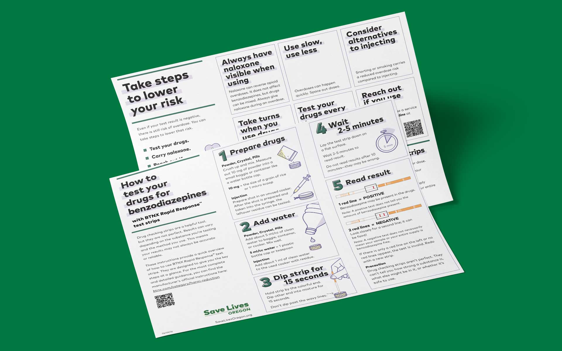 This guide provides simple instructions on using BTNX benzodiazepines test strips and tips on how to take steps to lower your risk of overdose. Print and fold into a trifold pamphlet and distribute with benzodiazepines test strips.