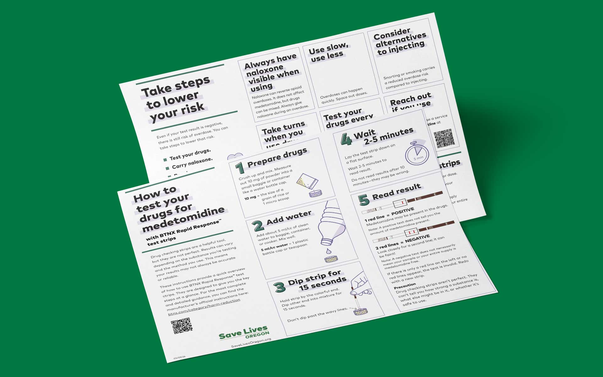 This guide provides simple instructions on using BTNX medetomidine test strips and tips on how to take steps to lower your risk of overdose. Print and fold into a trifold pamphlet and distribute with medetomidine test strips.